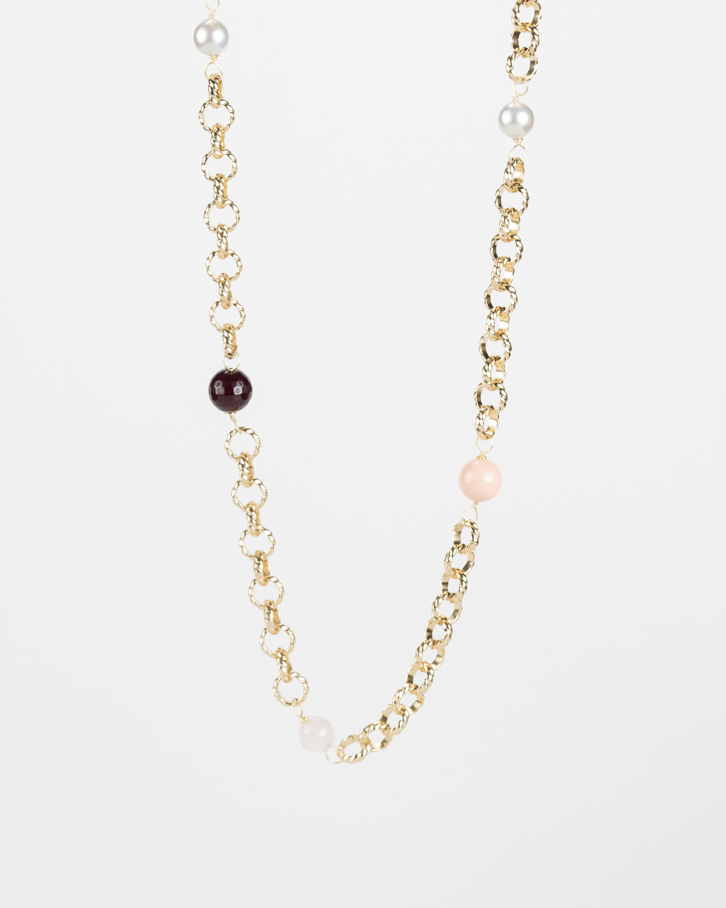 Collana con Agata Amarena, Perle, Quarzo Rosa, Pasta Corallo