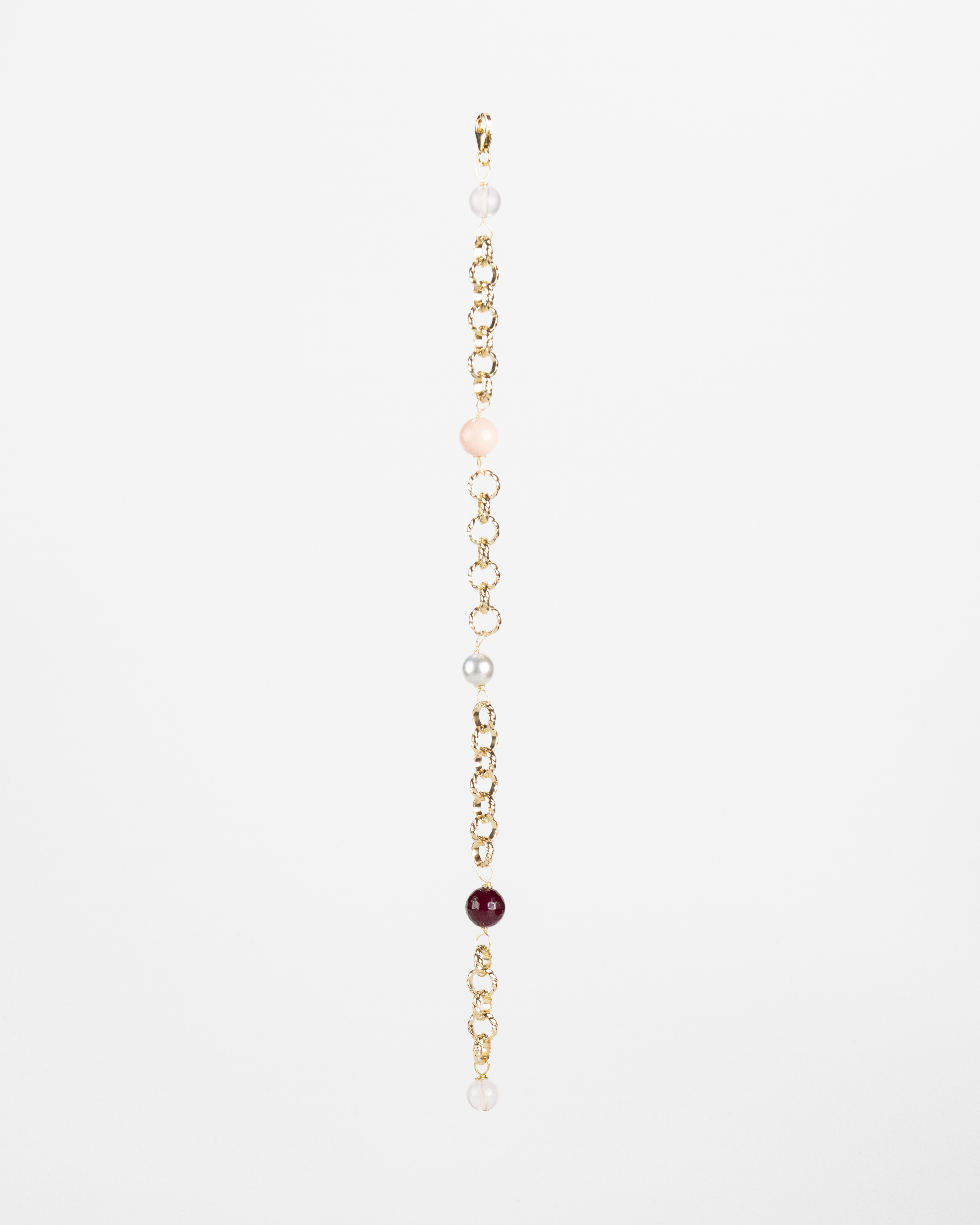 Esplora l’incantevole bellezza della nostra collana, unendo l’eleganza dell’agata amarena, la delicatezza delle perle, la dolcezza del quarzo rosa e la vivacità della pasta di corallo, il tutto incorniciato da un raffinato telaio in alluminio dorato. Disponibile in due lunghezze per soddisfare ogni preferenza, questa collana rappresenta l’armoniosa fusione di stili e materiali, offrendo un tocco di raffinatezza e stile distintivo a chiunque la indossi. Completato da un bracciale assortito, questo set è perfetto per chi cerca eleganza e versatilità a un prezzo accessibile.