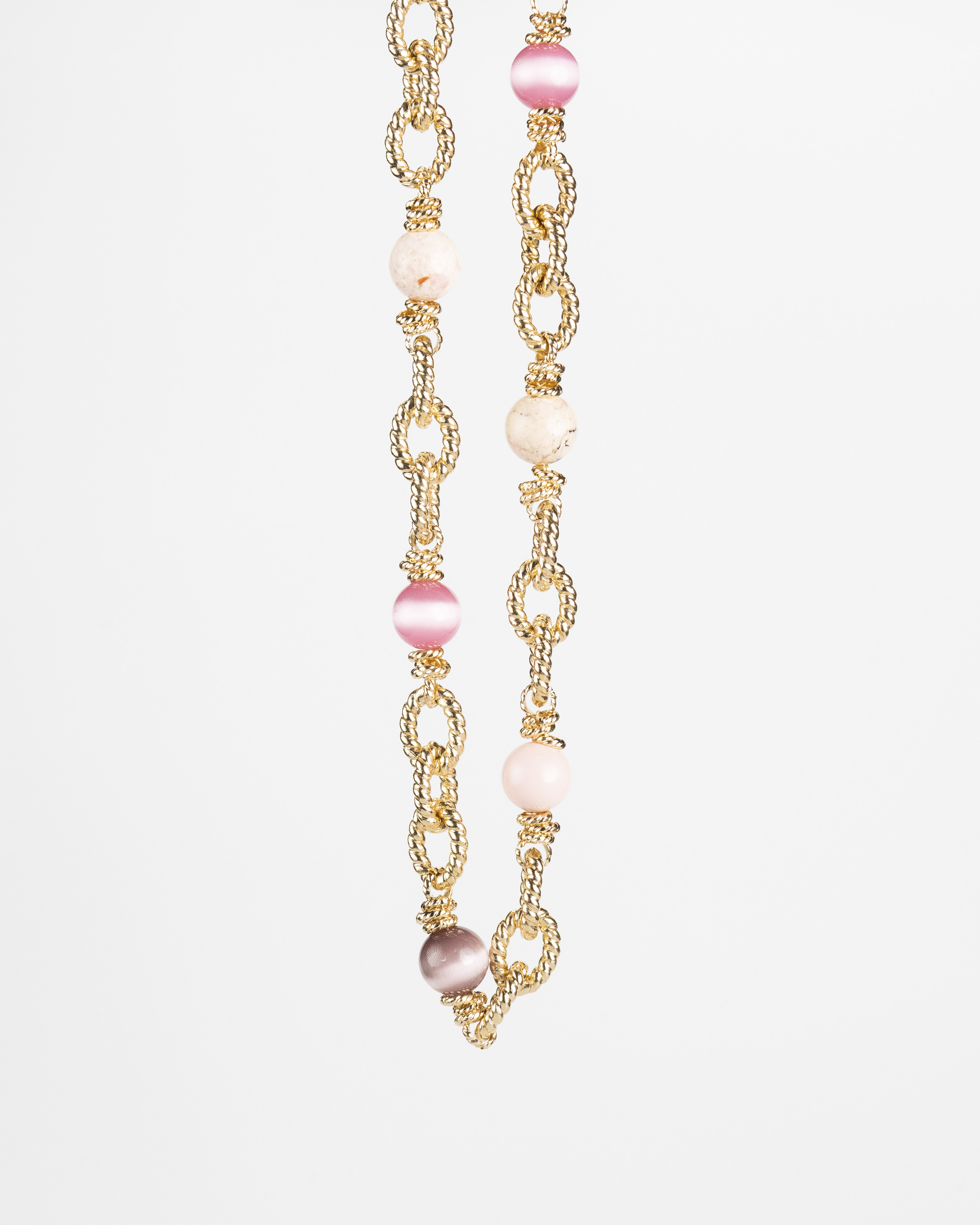 Girocollo con Maglie Elicoidali, Pasta Corallo, Occhio di Gatto e Opale Rosa