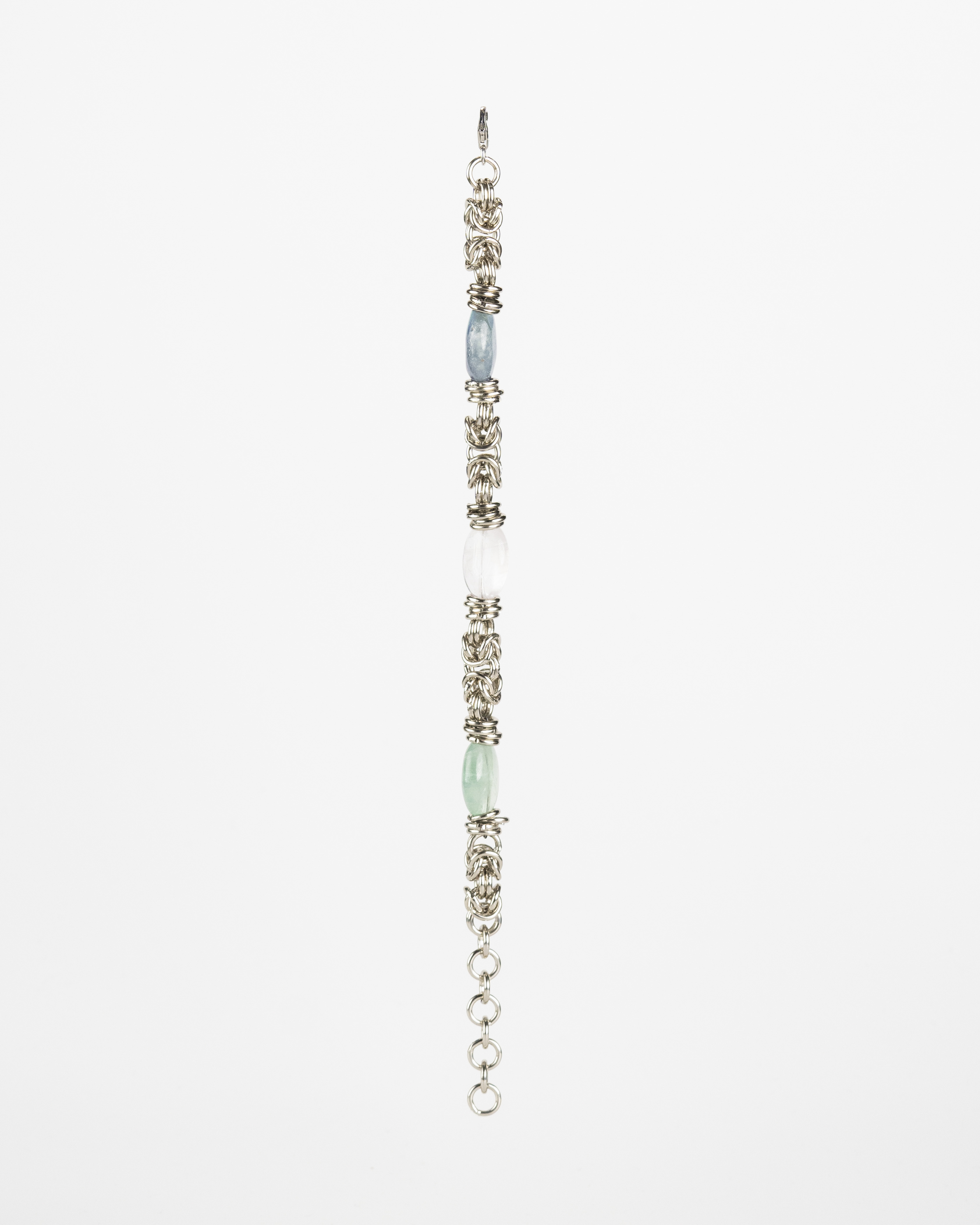 Esplora la bellezza sofisticata del nostro girocollo con maglia bizantina, arricchito da splendide fluorite e realizzato in alluminio bianco. Questo gioiello incarna l’eleganza e la raffinatezza, unendo la complessità della maglia bizantina con la brillantezza naturale delle fluorite. La maglia bizantina offre una texture intricata e sofisticata, mentre le fluorite aggiungono un tocco di colore e luminosità. Indossalo per aggiungere un tocco di stile unico e raffinato al tuo outfit.