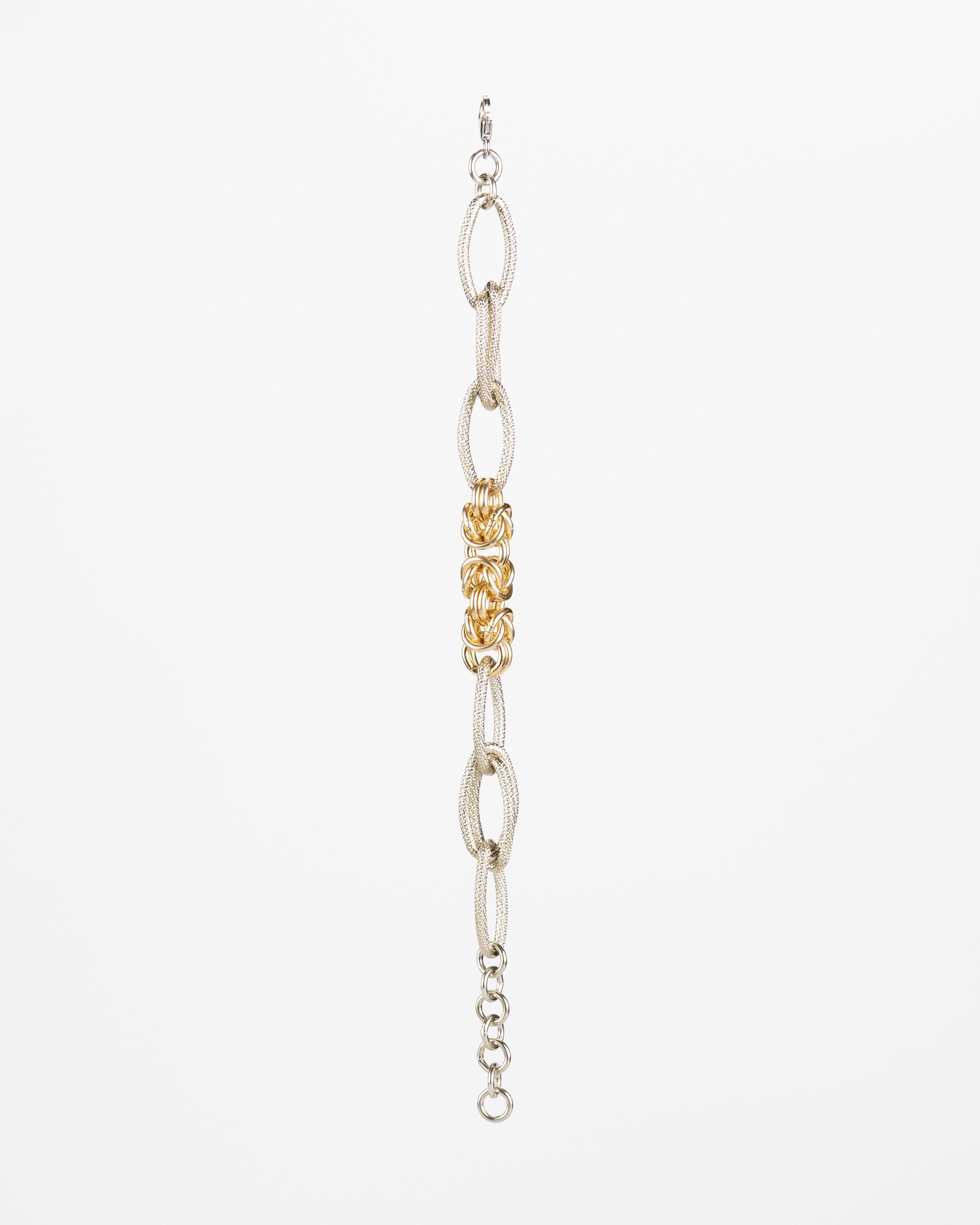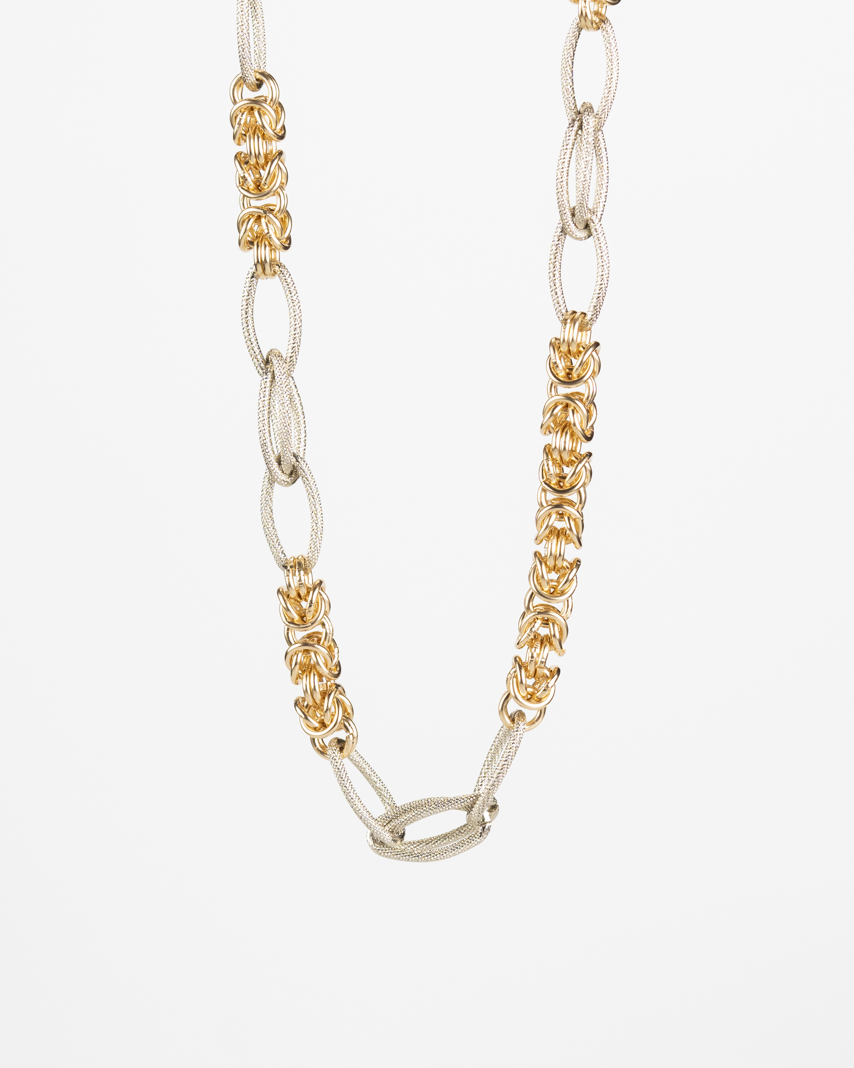 Scoprite l’eleganza con il nostro girocollo maglia bizantina e losanga martellata, una fusione di forme e materiali. Realizzato in alluminio dorato e bianco, questo gioiello è un’icona di artigianato moderno e stile senza tempo. La maglia bizantina si unisce alla losanga martellata, creando un equilibrio tra tradizione e innovazione. L’alluminio dorato e bianco cattura la luce con eleganza. Questo girocollo è un’opera d’arte che esalta ogni look con lusso discreto e moderno, una dichiarazione di stile per gli amanti dell’eleganza senza tempo.