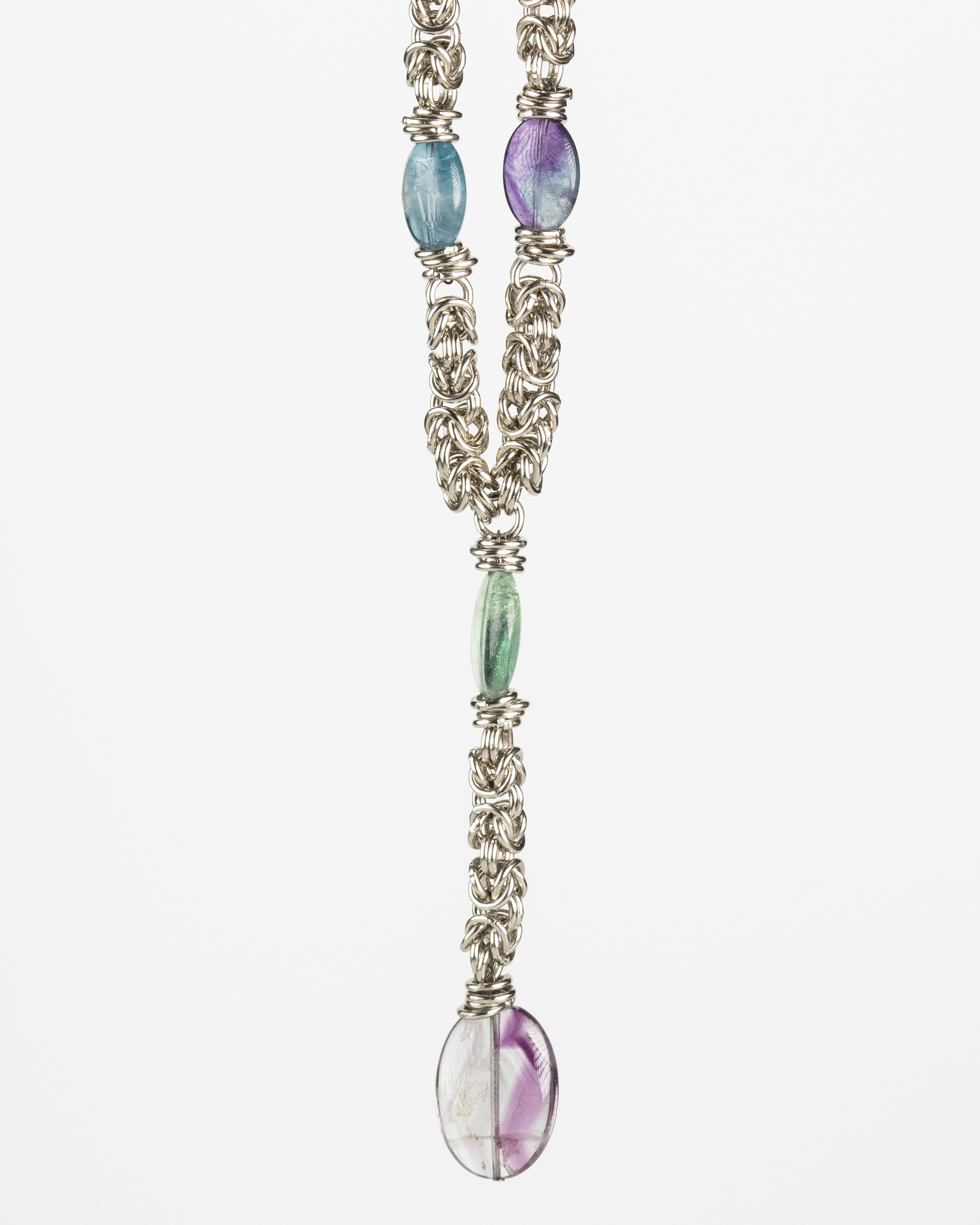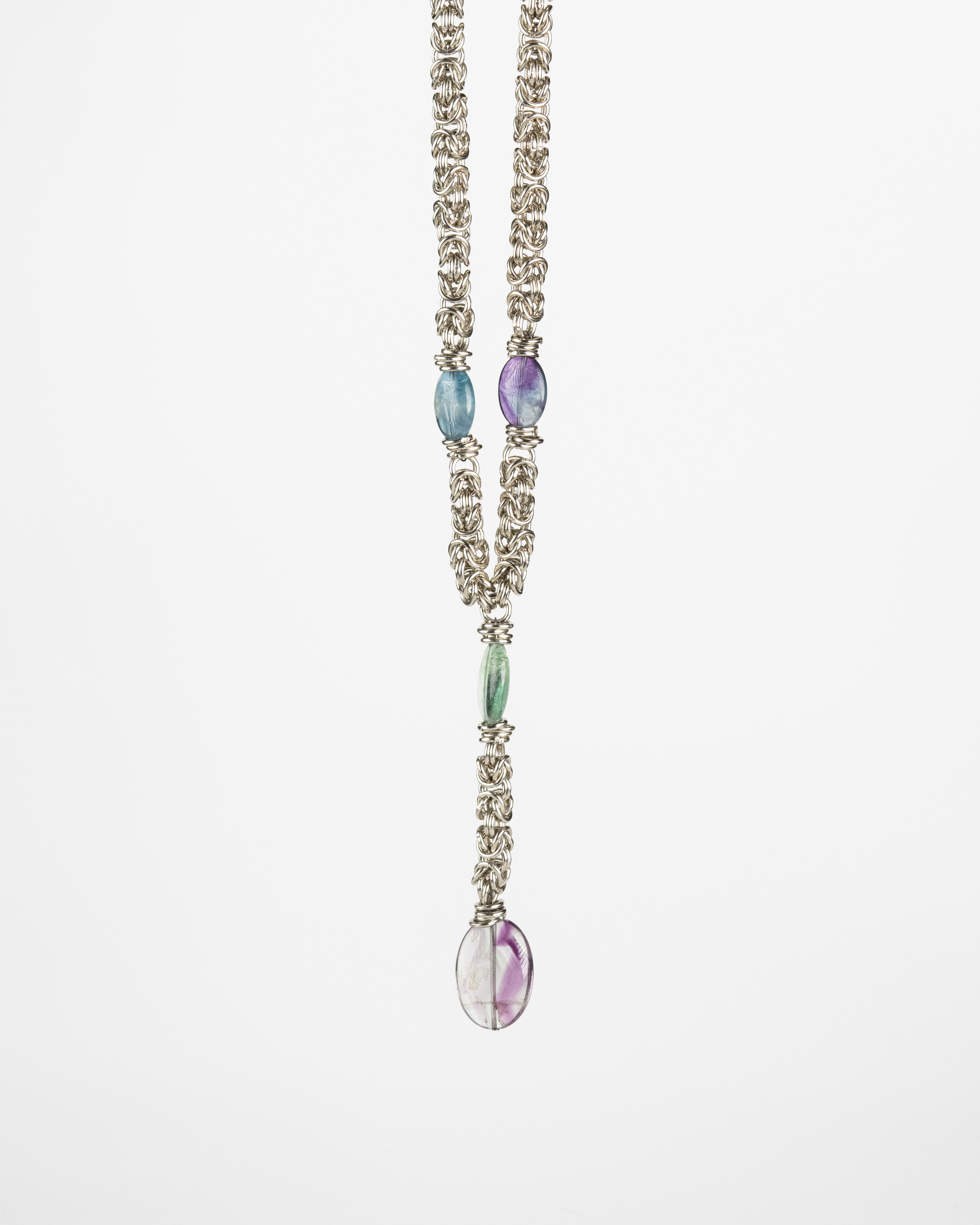 Girocollo Modello Cravattino Maglia Bizantina con Fluorite